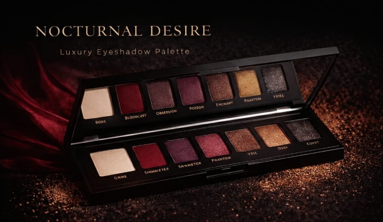 Step into the night with the Nocturnal Desire Eyeshadow Palette — a seductive blend of deep, mysterious hues crafted for after-dark elegance.